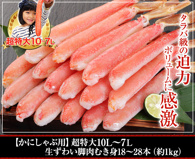 【かにしゃぶ用】超特大10L~7L生ずわい脚肉むき身18~28本(約1kg)