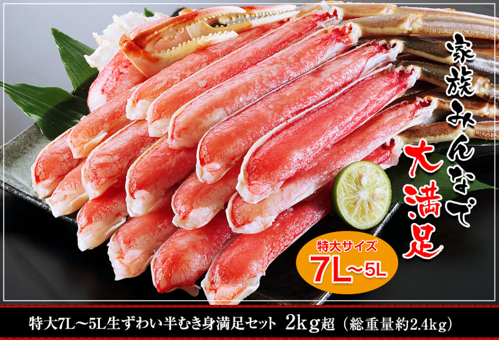 特大7L~5L生ずわい蟹半むき身満足セット 2kg超(総重量約2.4kg)