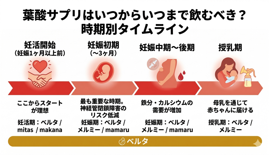 「栄養素の種類はベルタほど多くない」「妊活期専用の成分は入っていない」